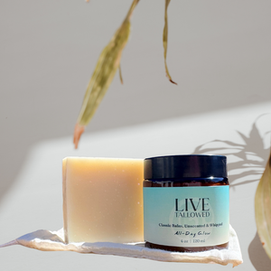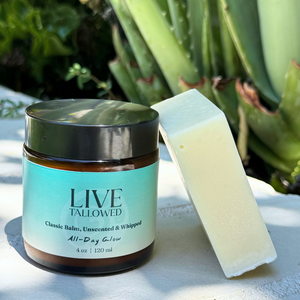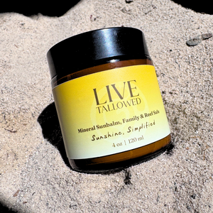 Rich balm that heals cracked skin overnight. Soap that cleanses without the tight, dry feeling. Mineral sunscreen that protects without chemical absorption. Each crafted with grass-fed tallow and organic oils—ingredients proven for generations. Simple, effective, safe for your entire family.